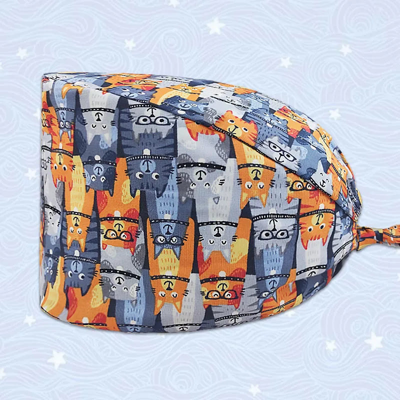 Cartoon Animal Print Doctor Surgery Cap Nurse Dentist Work Adjustable Veterinarian Pet Shop Cotton Scrub