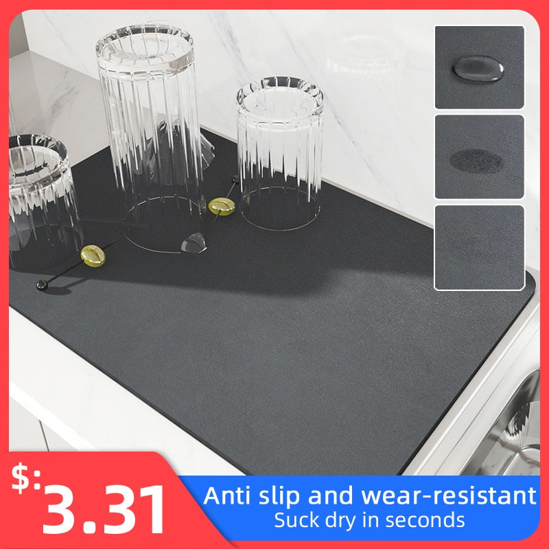 The Drain Pad Rubber Dish Drying Mat is the perfect addition to any kitchen. Its rubber and faux velveteen material is durable and soft, so it can be folded and moved easily while still retaining its shape. Its splash-proof design helps keep your counters clean and dry, absorbing water and coffee. It also helps the washed tableware drain water, preventing mildew and bacteria from growing. Plus, its anti-slip texture on the back ensures that it won’t shift, keeping it firmly in place. The Drain Pad Rubber Dish Drying Mat is perfect for use in kitchens, bars, and bathrooms as a coffee pad or drying mat. With its durability and superior water absorption capabilities, it is the perfect kitchen item for any home.