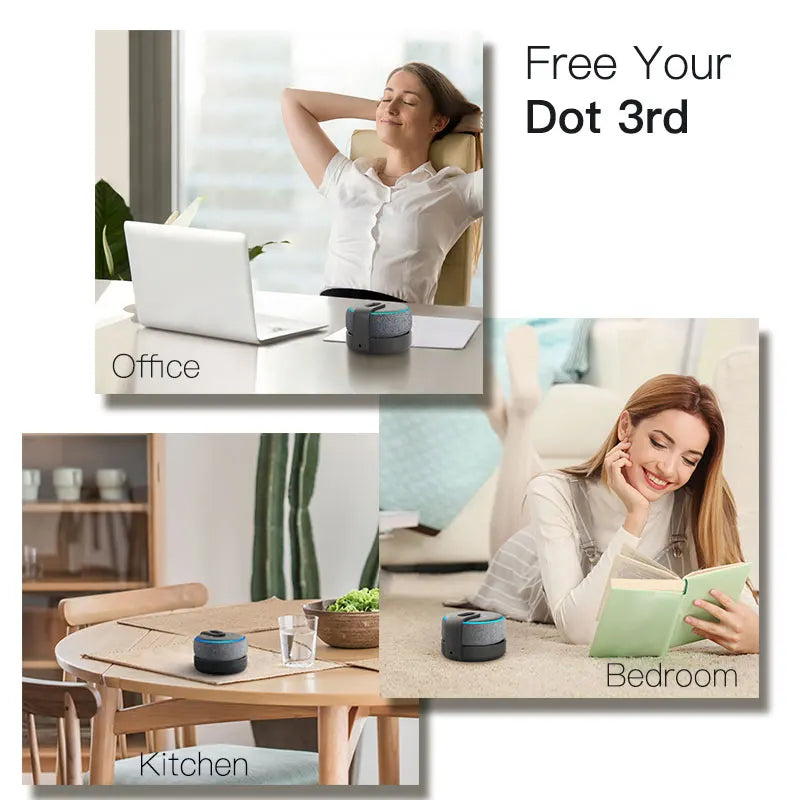 With the embedded rechargeable battery D3/D3+, you can release the power outlet for Dot 3rd Gen. The lightweight design allows you to play Dot in the kitchen, bathroom and living room etc. and also enables you to take it out on the balcony, porch and backyard to listen to music. Even then you can take a rest in your office.