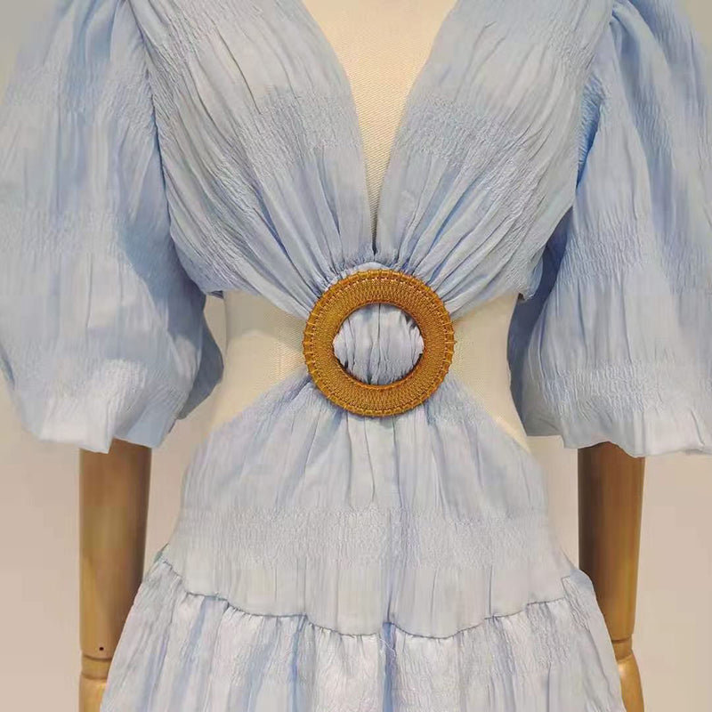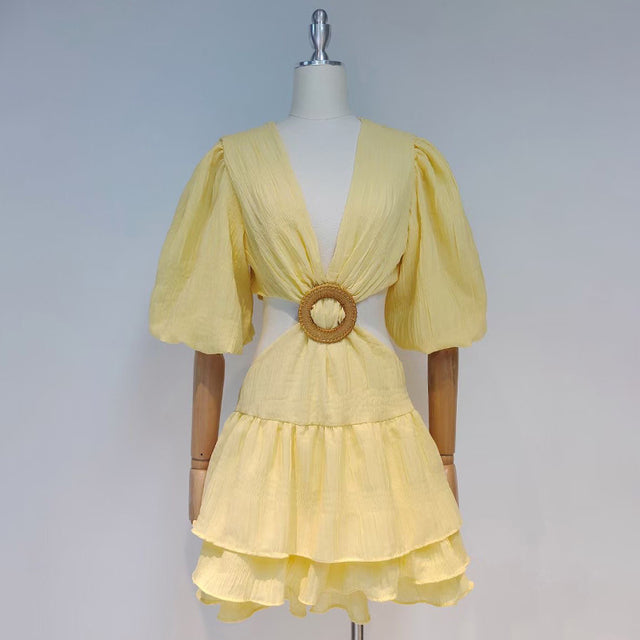Looking for a summer dress that will keep you cool and stylish? Look no further than our Women V Neck Lantern Half Sleeve High Waist Patchwork Mini Dress. Made from a cotton blend, this light and airy dress is perfect for those hot summer days. The bodycon fit flatters your figure, while the patchwork design adds a touch of fun and flair. Plus, the half sleeves offer just the right amount of coverage to keep you comfortable all day long. Whether you're headed to the beach or out for a night on the town, this dress is sure to turn heads.