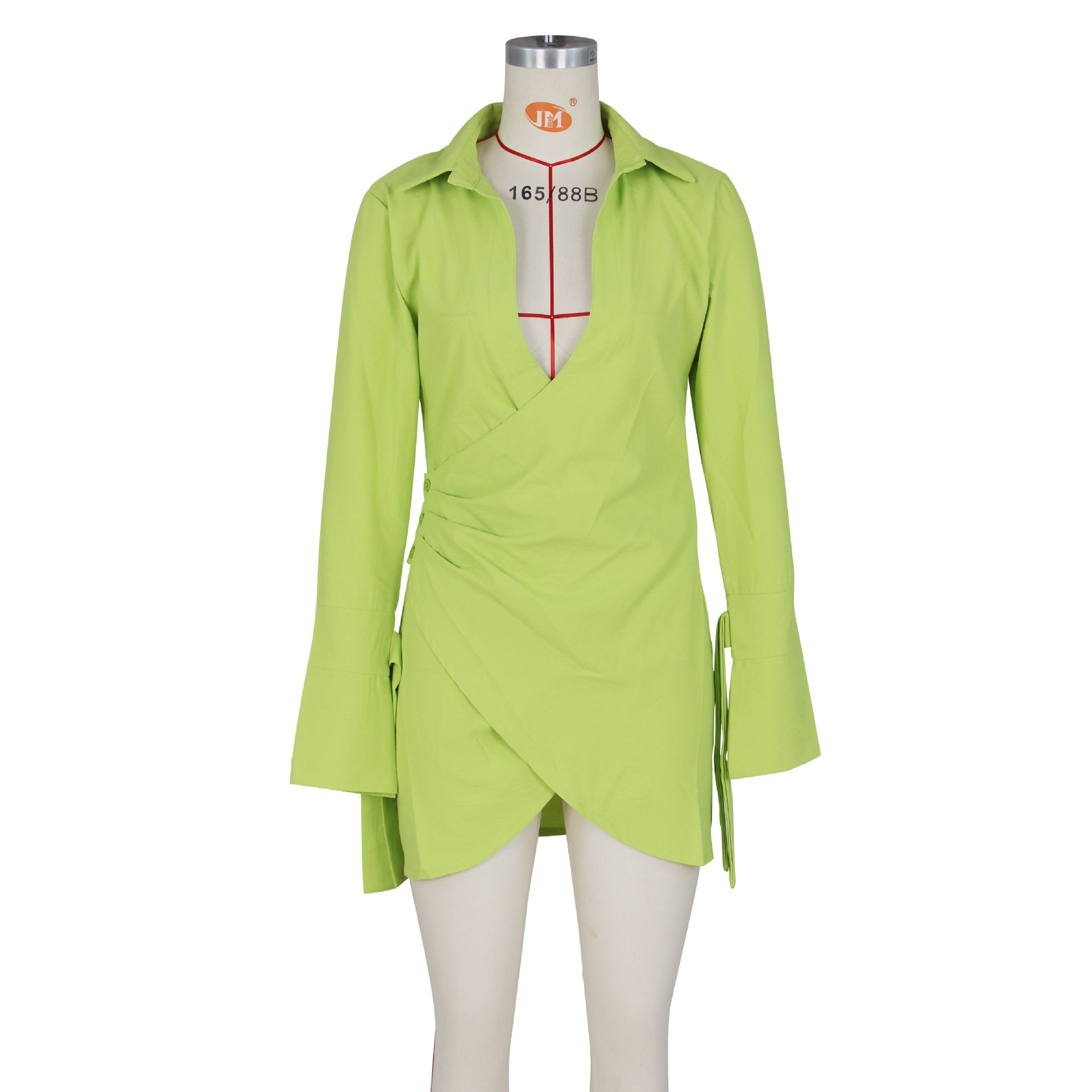 Introducing the Happy Hour Plunge Mini Shirt Dress! This stylish dress is perfect for weekday cocktails or social gatherings with friends. Featuring a collared neckline, deep V-neck, and long sleeves, this chic dress provides coverage while also offering just the right amount of sophistication. Best of all, its wrap front design and mini/above knee length provide an extra pop of flattery that will make you standout in any room. Crafted from polyester fabric, it's lightweight and soft to the touch while subtly contouring your curves with its regular fit. Whether you're enjoying a night out or attending a formal event, this Happy Hour Plunge Mini Shirt Dress is guaranteed to turn heads!