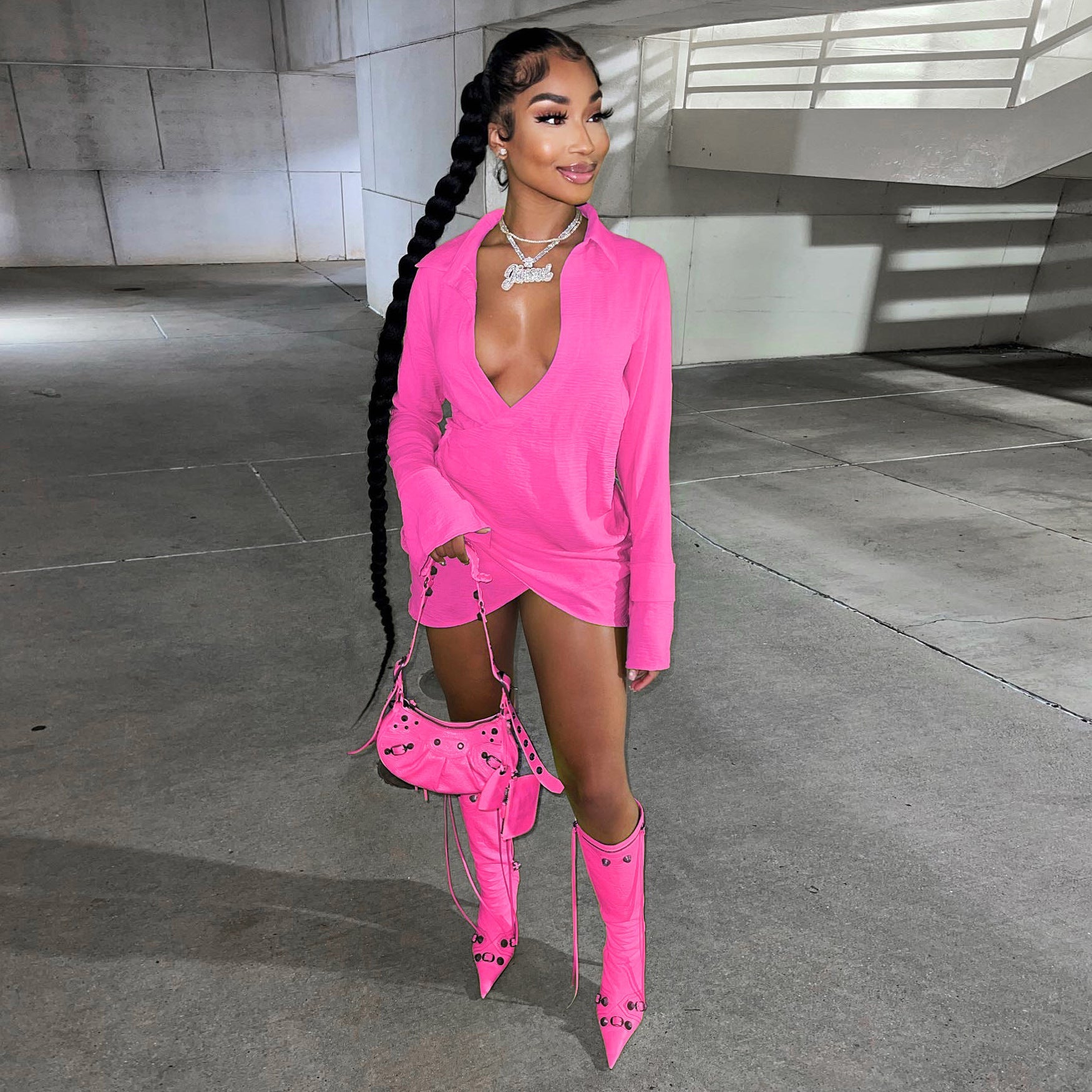 Happy Hour Plunge Mini Shirt Dress