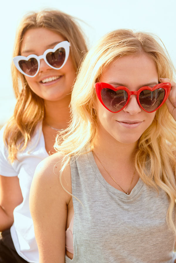 We're all heart-eyes for these adorable sunglasses. A perfect addition to your bachelorette party gift bags! Available in 4 fun colors: White, Pink, Red and Black.