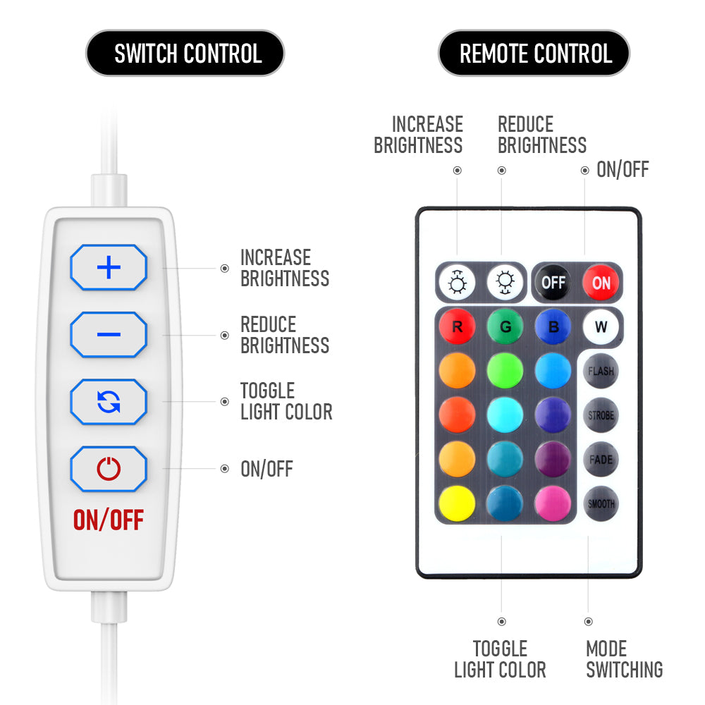 The lamp has RGB light with 16 colors. Just this style with a Remote. It can recharge to use.