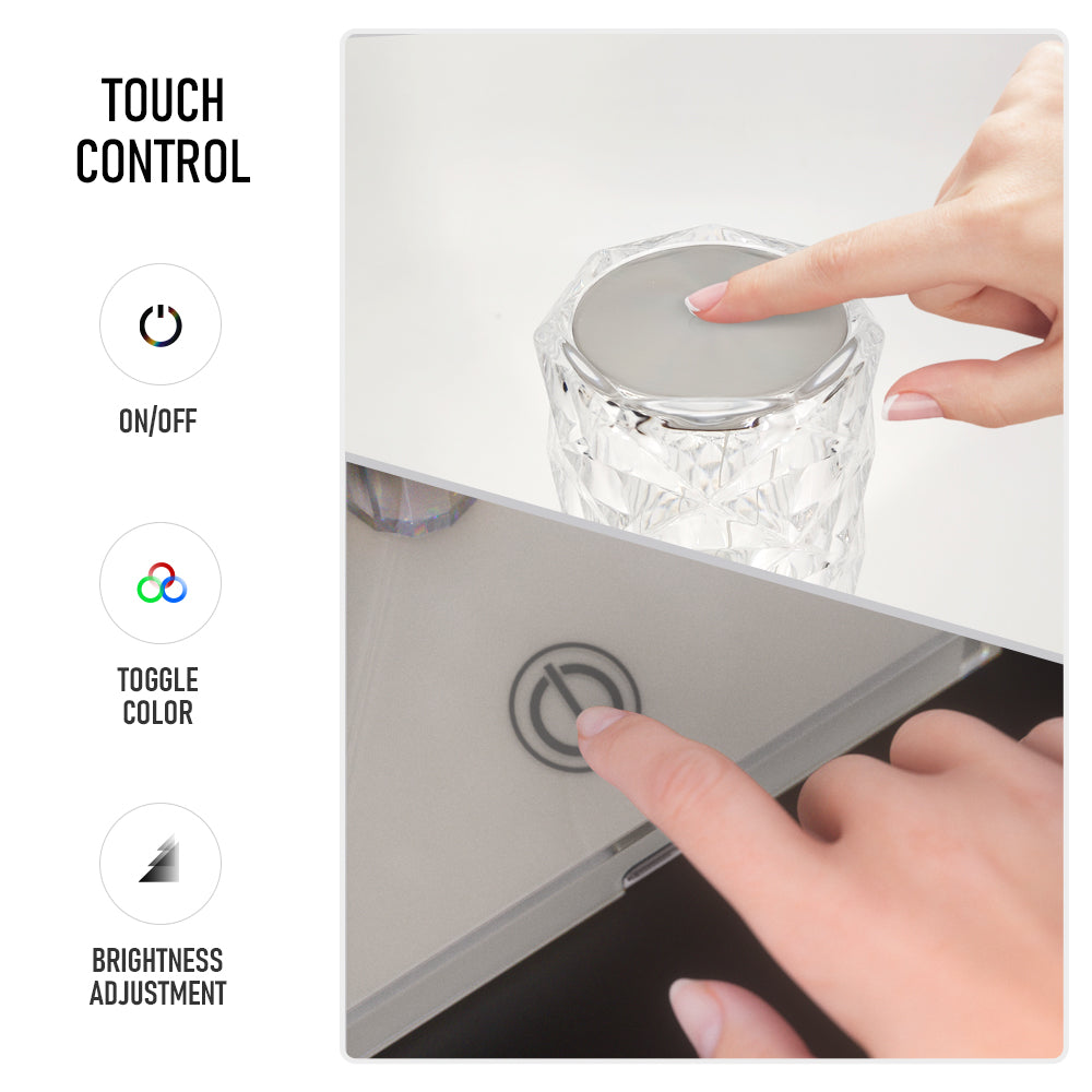 Introducing the LED Projection Crystal Lamp! This beautiful lamp is perfect for any room in your home, from the bedroom to the living room to the dining room or office. It features four different styles to choose from, and three different functions, making it highly versatile. USB power, touch-rechargeable, or remote-rechargeable, you can choose the perfect option for your needs. The lamp also features various scenarios settings, so you can find the perfect light setting for any activity. And with three light colors and 16 light color options, you can customize the perfect ambiance for any mood or occasion. Whether you're looking for a romantic nightlight or a practical desk lamp, the LED Projection Crystal Lamp is the perfect choice.