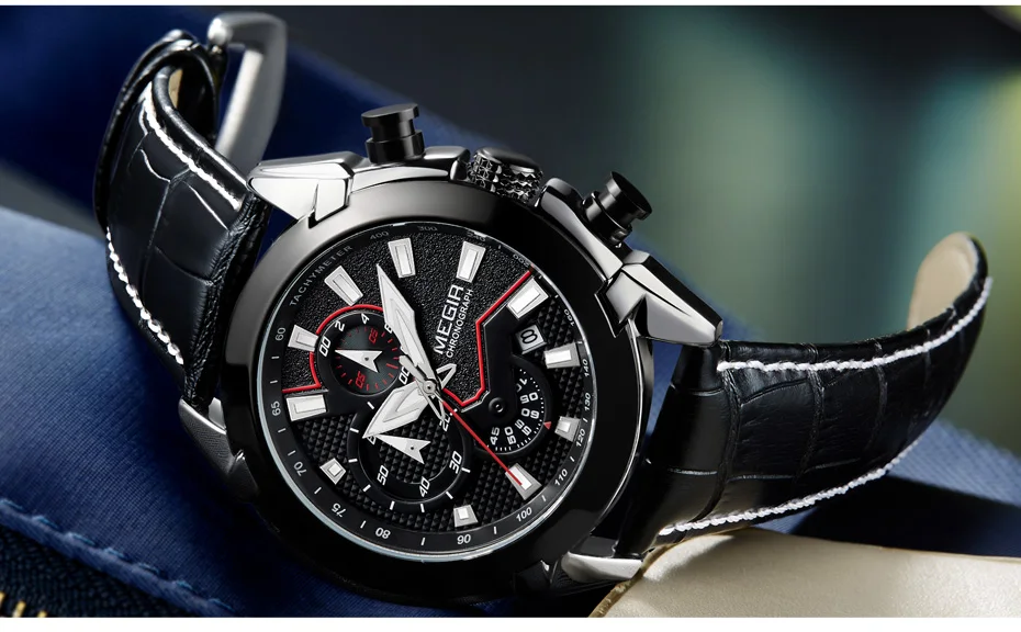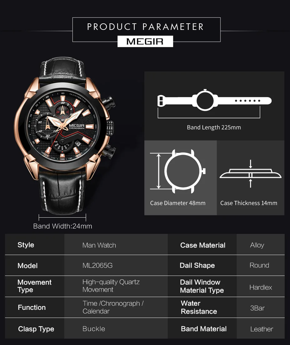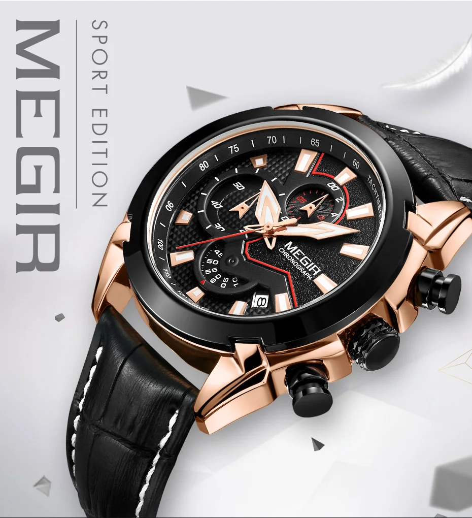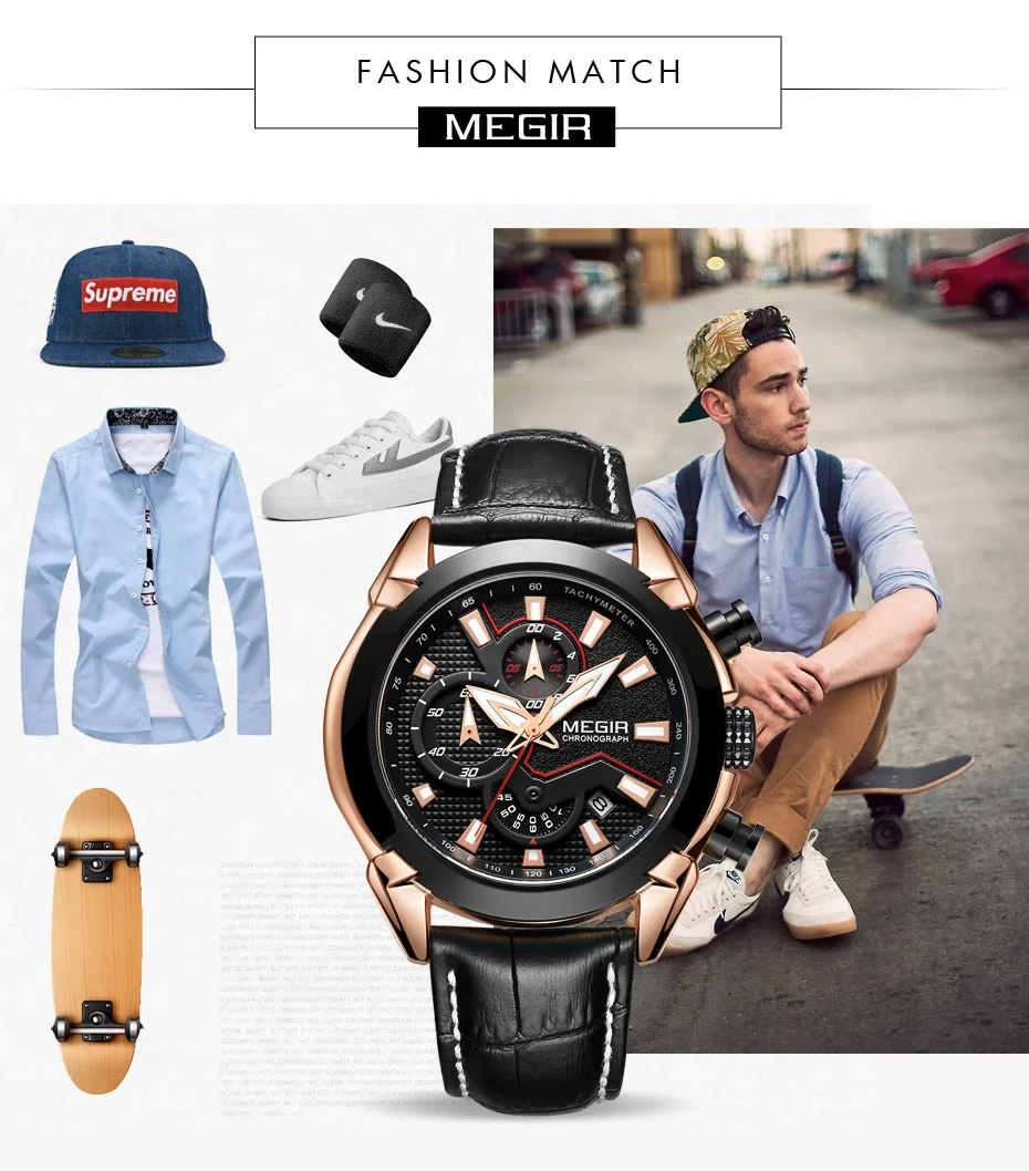 MEGIR Military Sport Watch for Men Top Brand Luxury Watches Leather Strap Quartz Wristwatch Man Clock Chronograph Reloj Hombre