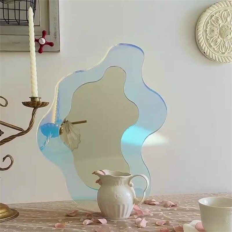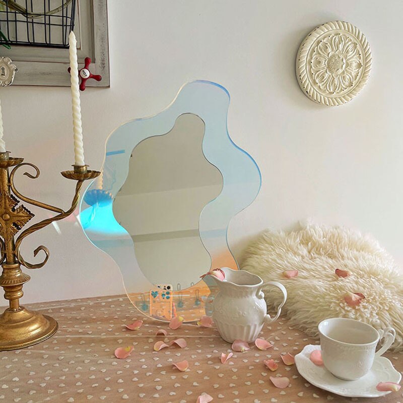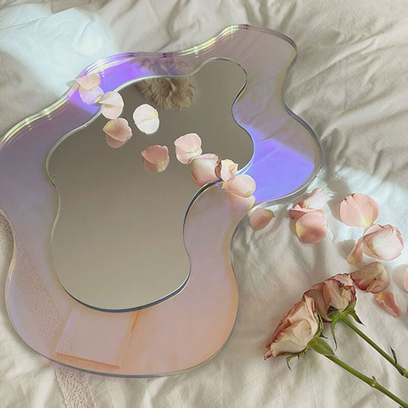 Introducing our Modern Luxury Special-Shaped Mirror – a statement piece that blends elegance and functionality seamlessly. This unique wall-hanging acrylic makeup mirror brings a touch of luxury to your space. With its big irregular shape, it's not just a mirror, but a captivating work of art that adds a burst of color and style to your home decor. Designed to be both practical and visually stunning, this cosmetic mirror offers a clear reflection while serving as a remarkable decorative element. Its modern design and vibrant colors make it an ideal addition to your desktop or any wall in your home.