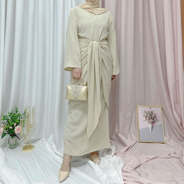 This Musulmane Abaya Elegant Satin Dress is the perfect choice for any Ramadan Eid Fashion look. An exquisite example of modern Islamic fashion, this dress will make an eye-catching addition to any wardrobe. Its puff sleeves and flowy silhouette give it a timeless beauty, while its luxurious satin fabric lends elegance and sophistication. It's perfect for religious worship services, memorable occasions like weddings and parties, or just everyday wear. Whether you want to dress up or dress down, this gorgeous abaya is the perfect choice; its versatility allows you to style it however you choose. Celebrate Ramadan festivals and other special gatherings in glamorous elegance with this amazing abaya; your peers will be envious!