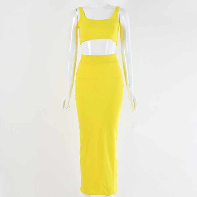 Looking for something sexy and eye-catching to wear on your next night out? Look no further than this Neon Color Sexy Ribbed Dress Set! This two-piece set includes a crop top and high-waisted long vestidos, both in a ribbed material that hug your curves in all the right places. The neon color is perfect for summer and is sure to turn heads wherever you go! Whether you're hitting the club or just want to feel confident and sexy, this dress set is perfect for you.