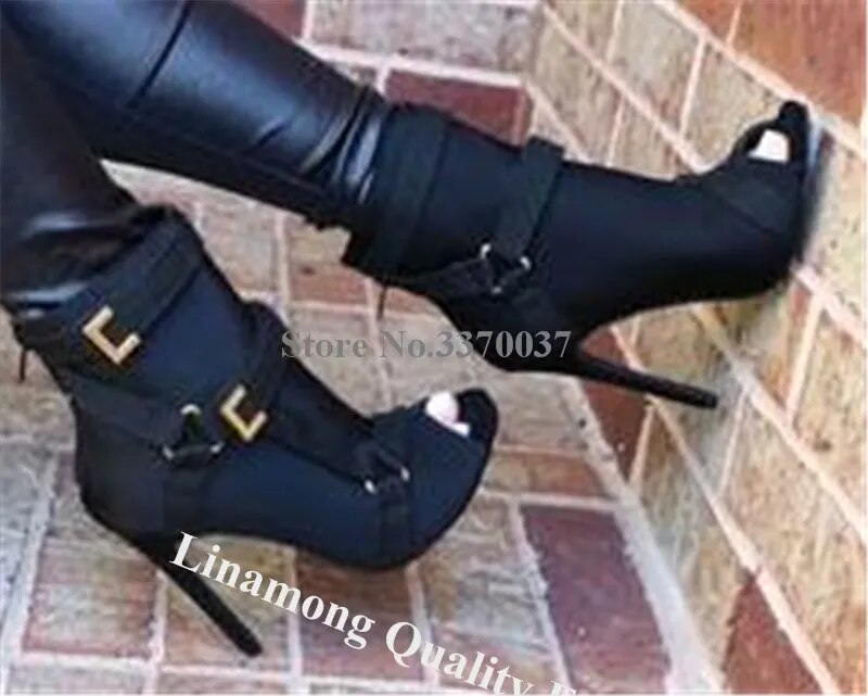 Name : New Design Women Fashion Peep Toe Suede Leather Stiletto Heel Short Boots Buckles Strap Black Army Green High Heel Ankle Booties