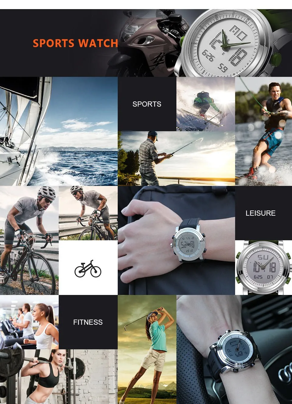 New SINOBI brand Sports Chronograph Men's Wrist Watches Digital Quartz double Movement Waterproof Diving Watchband Males Clock