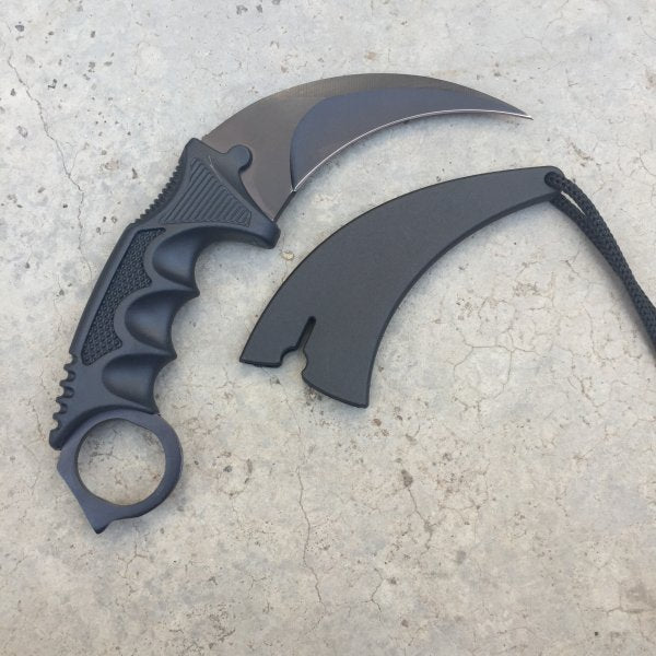 Take your camping or hunting experience to the next level with the Real Game Karambit Knife! This knife has been carefully handmade of stainless steel, providing a sharp blade and huge durability that can handle anything you throw at it. The ergonomically designed handles allow for an incredibly comfortable grip while you wield this tool during outdoor activities, making for a much more enjoyable experience. Furthermore, the convenient hanging clip attached to the handle makes it extremely easy to store and bring along with you wherever you go. With its striking CS GO Counter Strike black design, this karambit knife will make a statement wherever you bring it. Be careful to keep 'Real Game' away from curious little ones – they might unknowingly hurt themselves! Purchase this incredible hunting tool today and take your outdoor adventures further than before.