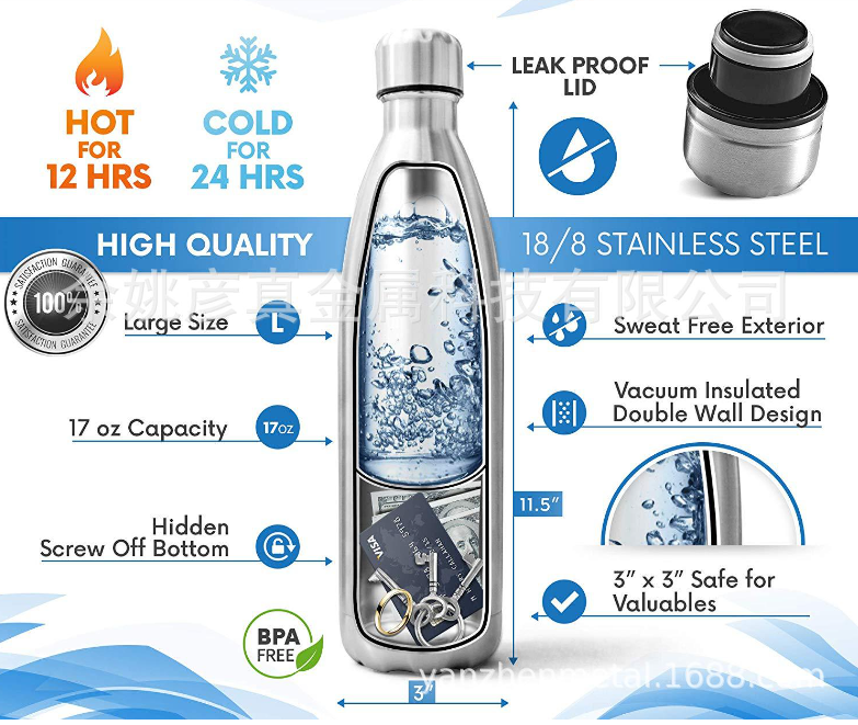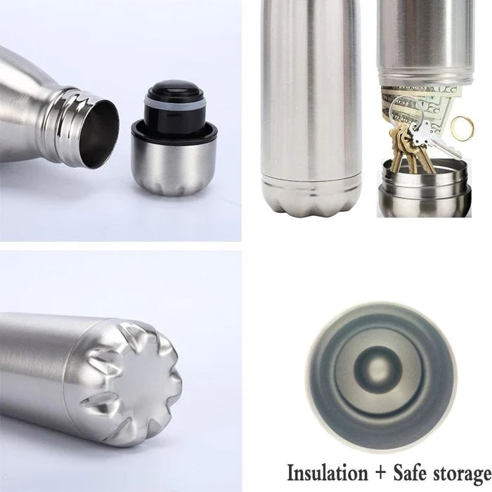 Introducing the Secret Stash Water Bottle™ – the stylish blend of form and function you never knew you needed! This premium 16 oz stainless steel water bottle is the perfect way to keep yourself and your valuables both secure and hydrated. With its leak-proof design, you can rest easy knowing that your bottle will remain securely sealed and your belongings will be safe from any unexpected spills. Not to mention, its discreet hidden compartment allows you to carry small valuables without anyone being the wiser. Whether you’re going on an adventure or simply your daily commute, the Secret Stash Water Bottle™ has got you covered. With its impressive combination of convenience and security, you’ll never have to worry about being left thirsty and vulnerable during your busy day. So, grab yourself a Secret Stash Water Bottle™ and have peace of mind wherever you go.